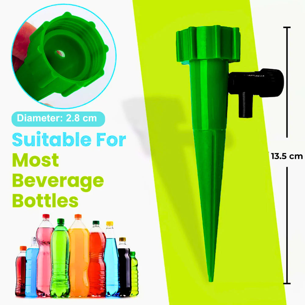 ✅ Simply attach the spike to a filled plastic bottle, adjust the flow valve, and insert it into the soil. The water will drip slowly, keeping your plants hydrated automatically.